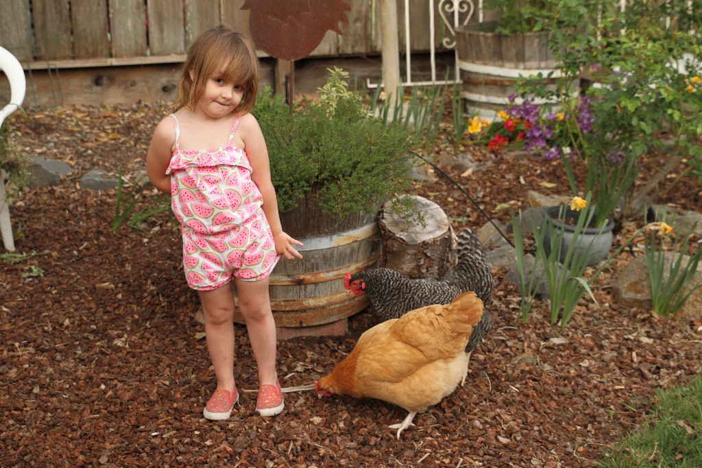 Day after day I let her out, with her buddy Windy, so she could drink from a separate water dish and have a little alone time. She sat on my lap, wandered the yard and followed my little granddaughters around like a puppy. We were falling in love with her…and fast! Who knew a chicken could be so loving?