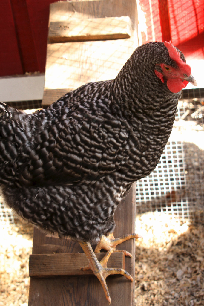 I set the pot in the run which sent them all running into the coop. Lacy was the first to venture out and take a look: