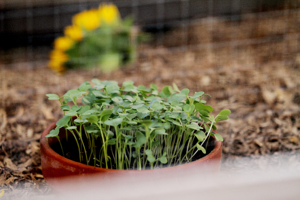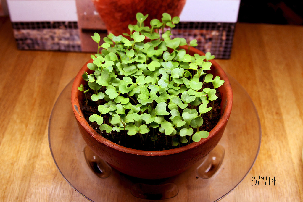 They loved eating the greens, I love growing them….so, it’s a win/win! Now the lights have one pot of chicken treats and all our spring seeds under them! Happy Spring!
