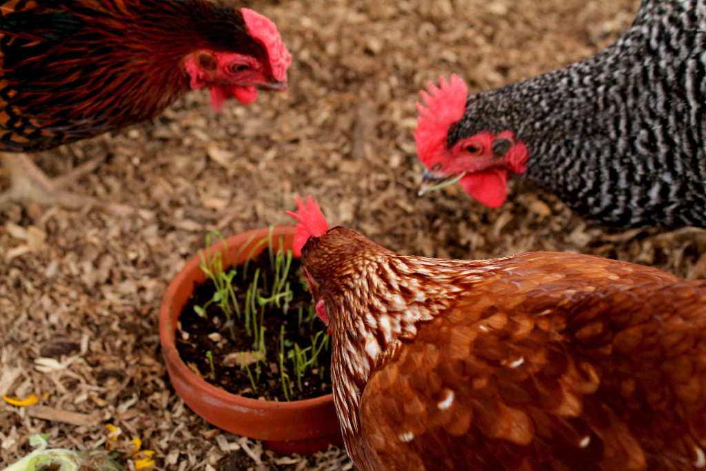 And the rest happened so quickly I almost missed it! Once Lily took a bite she must have conveyed her delight through some “chicken thoughts” that the others picked up because that pot lasted all of 2 minutes!
