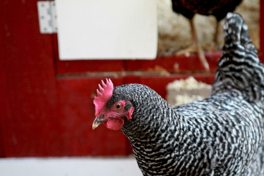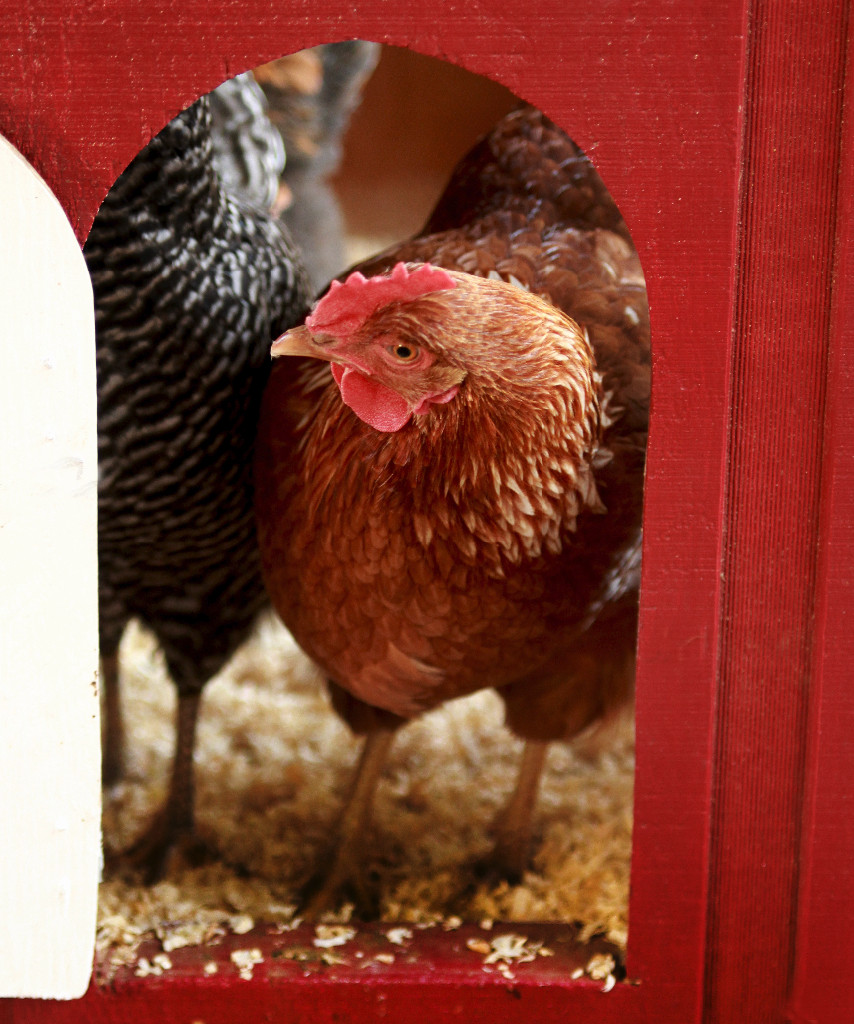 They’re clucking excitedly at the extra treats, she is silently giving me the evil eye and reluctantly following the handful of worms. Of course, I’m not looking where I’m going, so my boots, (the office kind, not the chicken coop cleaning kind) are getting, well, not office appropriate! As we approached the door she cocked her head and glared at me as only a chicken can with one eye to the ground and one to the sky, as if to say, “if you get out of the way, I’m trying to go home”! In she went to the obvious delight of her friends who gathered around her…(Now all three are looking at me like, “how could you let this happen)!