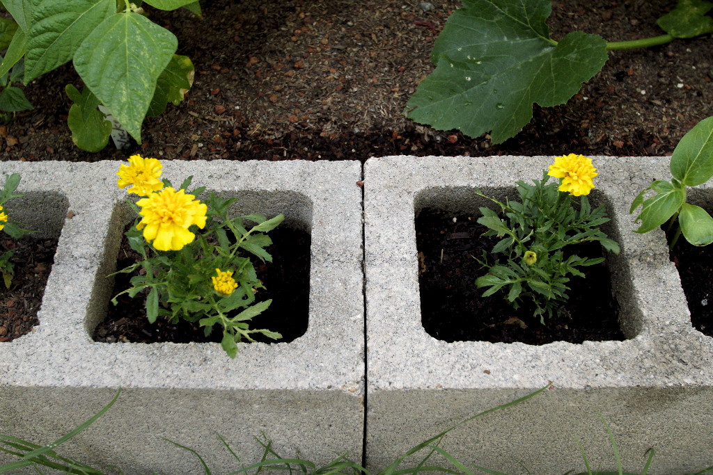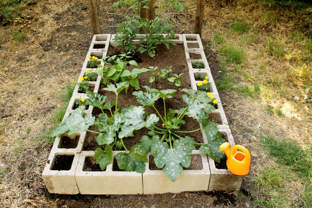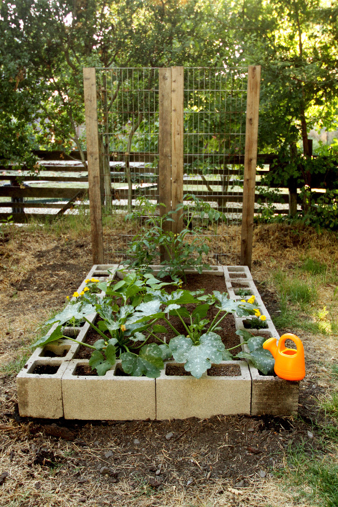 Her vegetables grow in a concrete block garden set in a sunny location in the back of the property: