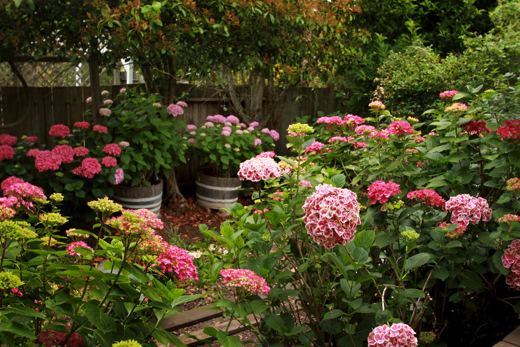 This was quite a production but the beautiful blooms are worth it! Hydrangeas will give you decades of loveliness if you give them what they like! Our happiest plants are planted in barrels beneath some overhanging trees were they get dappled light and no hot afternoon sun.