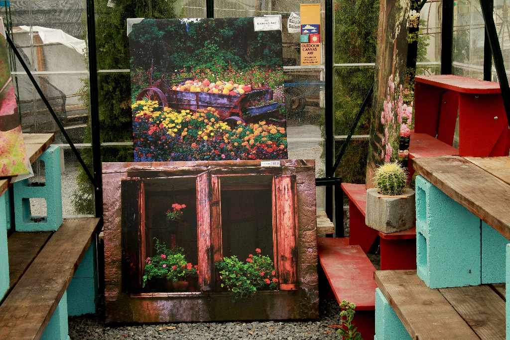 They even had garden canvas art displayed in a greenhouse and around the nursery: